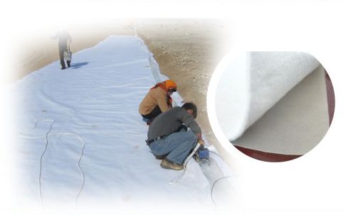 1、一布一膜,為一層重量為100g-700g/㎡的HDPE土工膜,通過(guò)化學(xué)或熱粘合上一層 200g-600g/㎡的無(wú)紡?fù)凉げ紭?gòu)成,構(gòu)成了以HDPE土工膜為滲透層,土工布為保護(hù)層的復(fù)合結(jié)構(gòu);