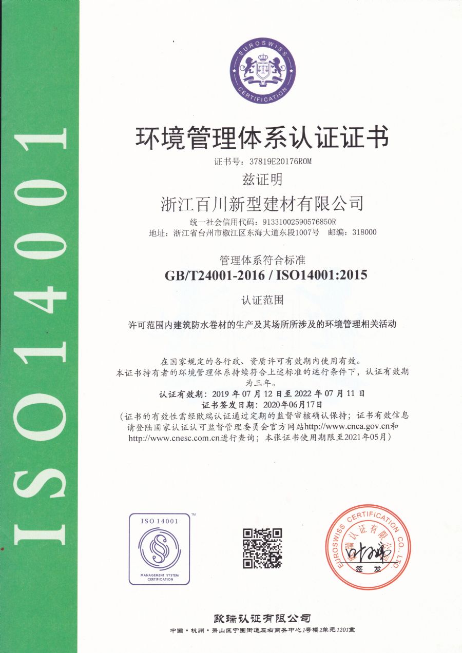 環境管理體系認證證書